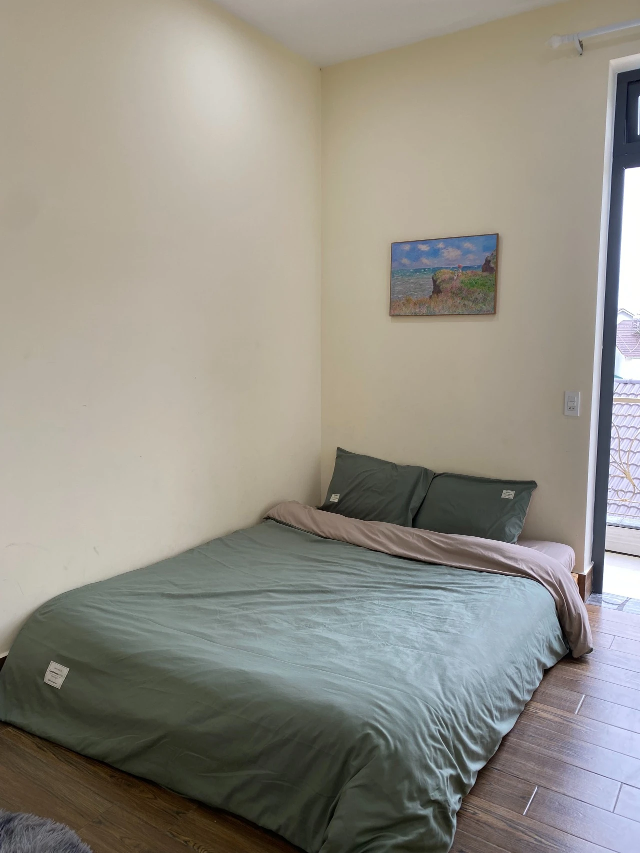 Với thiết kế đơn giản và nhẹ nhàng, căn phòng này của D Home mang đến cảm giác gần gũi, thân thuộc, như một chốn trở về bình yên mỗi khi bạn ghé thăm. Gam màu xanh rêu dịu dàng kết hợp hài hòa với sàn gỗ mộc mạc, tạo nên không gian ấm cúng và thanh tịnh. Mỗi góc nhỏ đều như ôm trọn bạn trong sự thư thái, giúp bạn tận hưởng những phút giây an lành, tựa như đang sống trong ngôi nhà yêu thương của chính mình.
